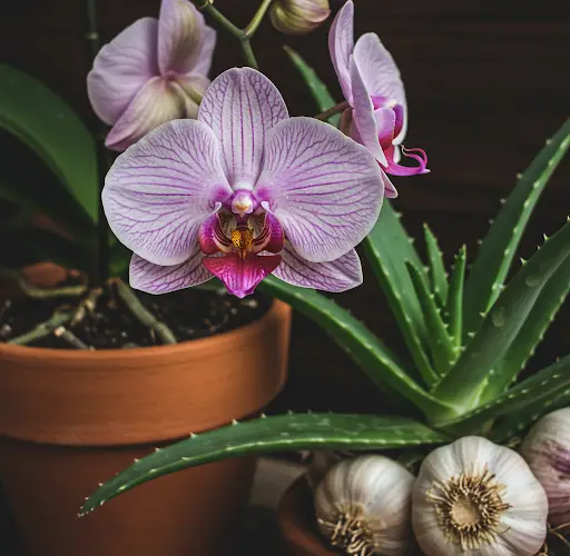 If the orchid stem and roots are still fresh but the leaves have withered, garlic water can help revive it.