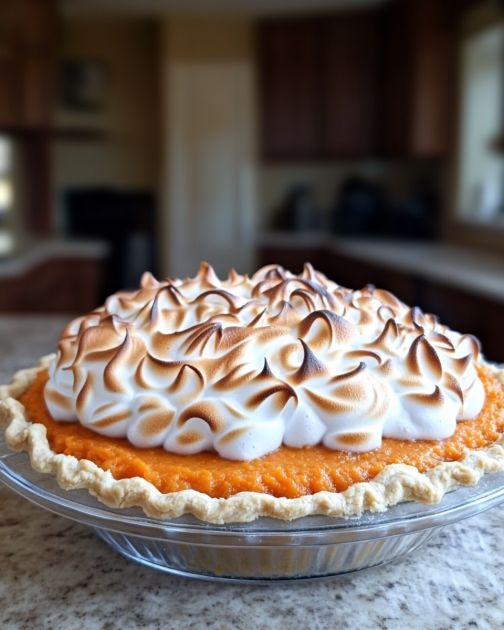 This sweet potato meringue pie pairs beautifully with a dollop of freshly whipped cream or a scoop of vanilla ice cream. For a complete meal, serve it alongside a hearty roast or a savory turkey, with a side of green beans or a crisp salad to balance the sweetness. A cup of hot coffee or spiced tea complements the flavors wonderfully, making it a perfect dessert for a cozy afternoon or a festive dinner.