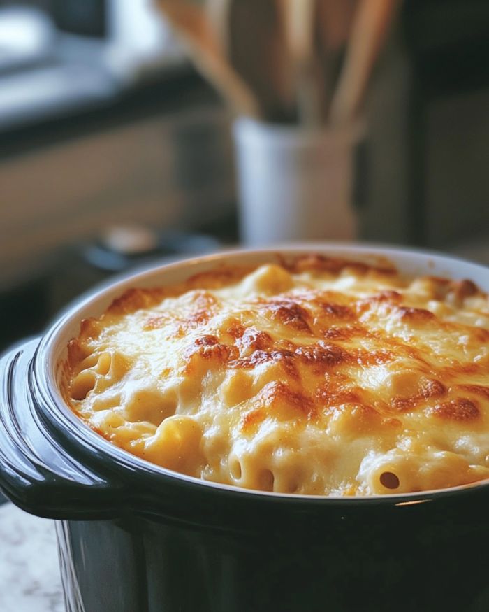 Pour the milk mixture over the macaroni and cheese in the slow cooker, stirring gently to combine.