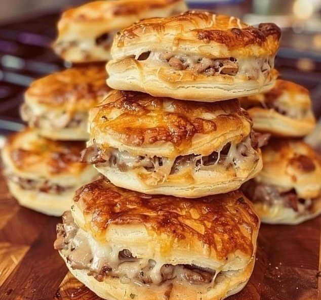 These look like Sausage-Stuffed Puff Pastries, a delicious and flaky appetizer! Here’s a recipe to replicate this savory treat: Sausage-Stuffed Puff Pastry Recipe Ingredients: •1 lb (450g) ground sausage (mild, spicy, or breakfast sausage) •1/2 cup (120g) cream cheese, softened •1/2 cup (60g) shredded cheddar cheese Read more •1 package (2 sheets) puff pastry, thawed … Read more