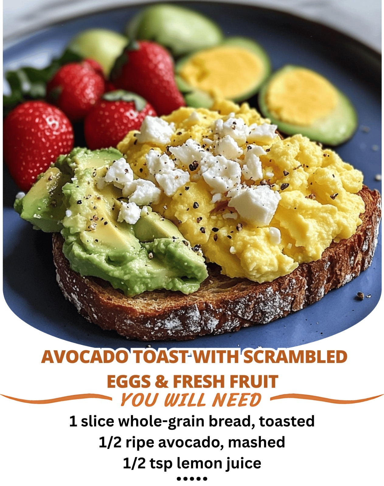 Avocado Toast with Scrambled Eggs & Fresh Fruit is the ultimate breakfast trifecta: creamy avocado, protein-packed scrambled eggs, and the natural sweetness of fresh fruit. This dish is not only delicious but also packed with healthy fats, vitamins, and fiber, making it a perfect way to start your day feeling full and energized. Whether you’re enjoying it on a lazy Sunday morning or rushing out the door for work, this meal combines simplicity, nutrition, and flavor in every bite.