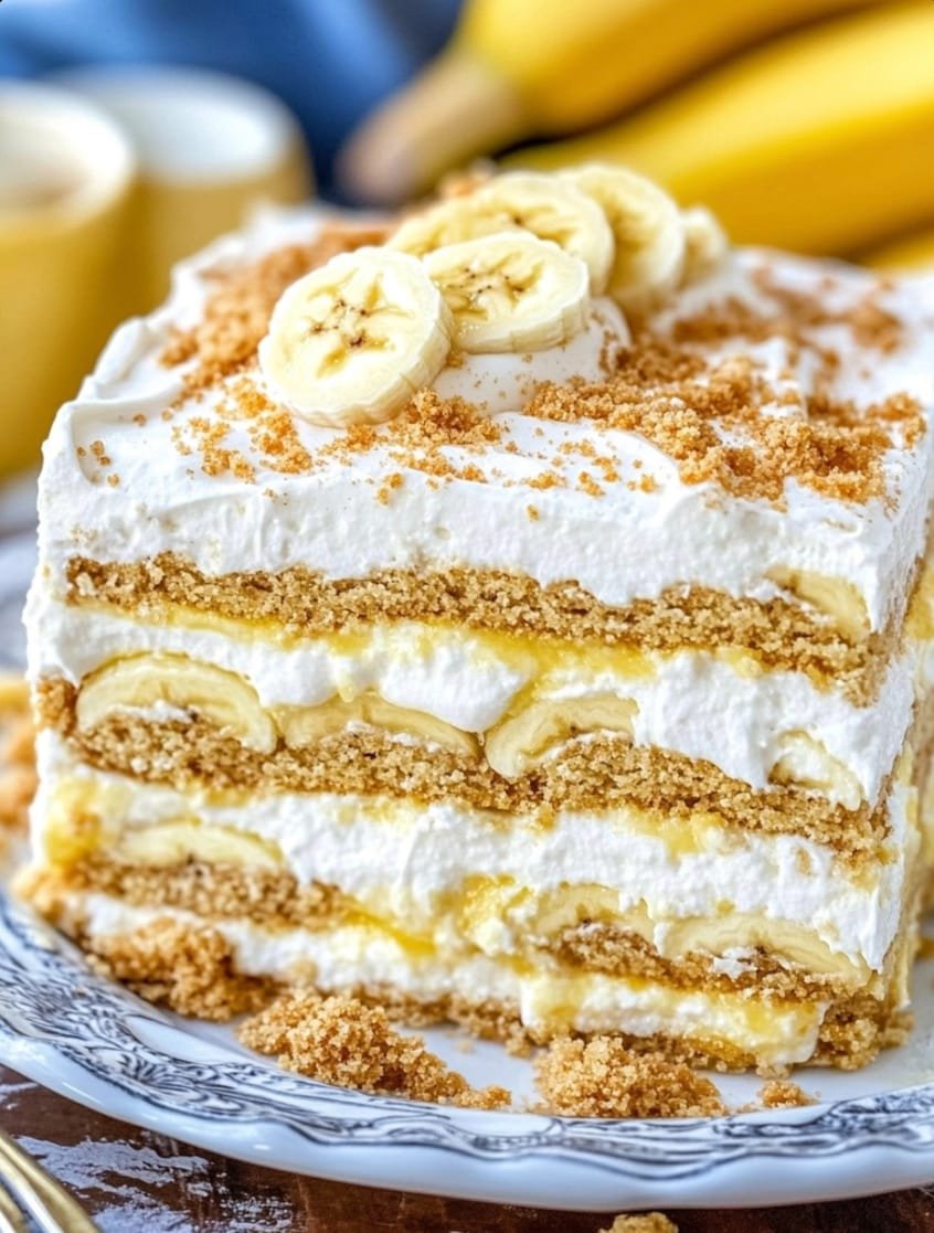 This no-bake Banana Icebox Cake is creamy, cool, and perfect for warm days! Layers of graham crackers, fresh bananas, and a velvety cream filling make each bite a delicious experience. Best of all? It’s super easy and quick to assemble!
