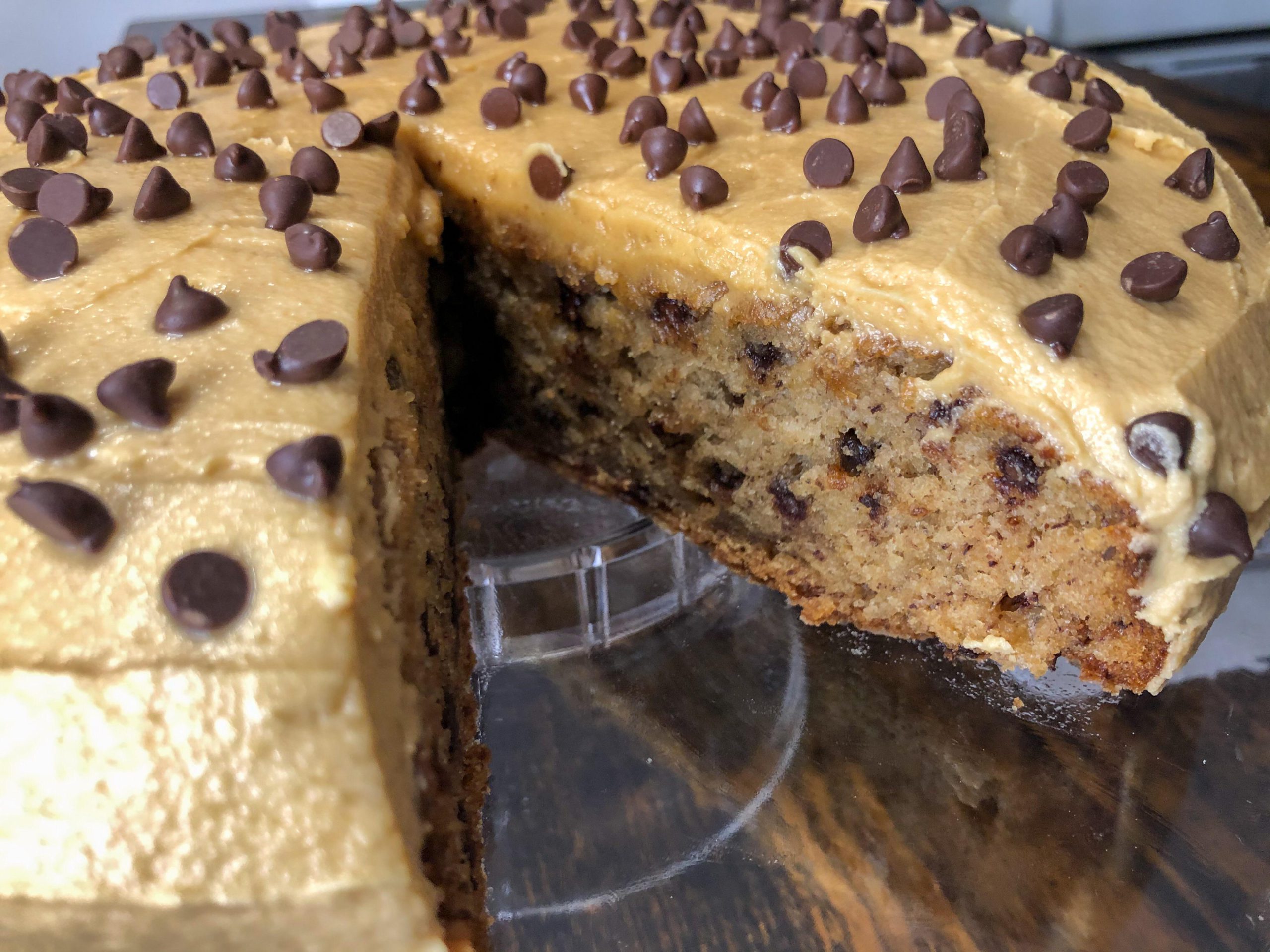 Banana Chocolate Chip Cake with Peanut Butter Frosting