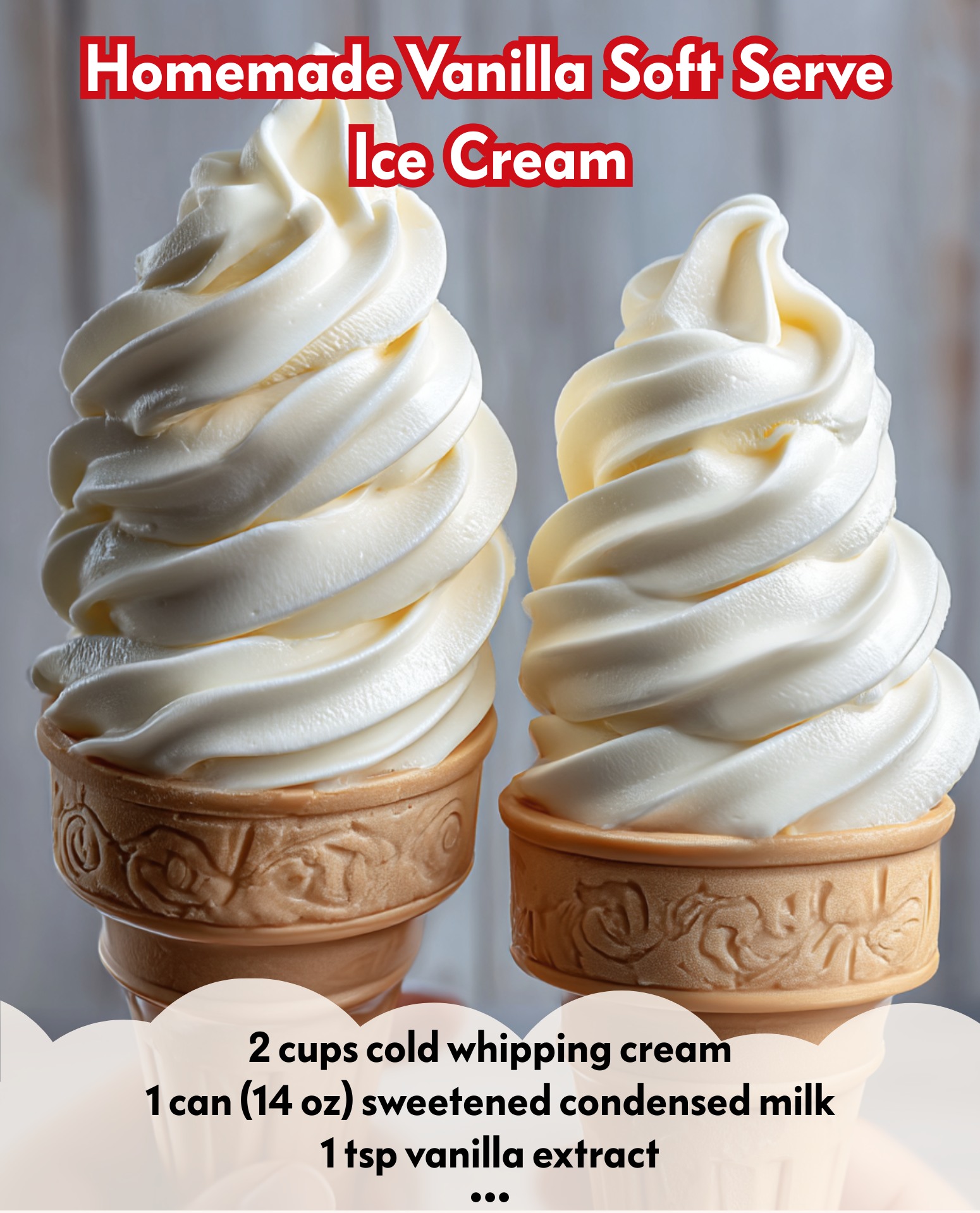 Freeze for at least 6 hours or overnight. Before serving, let the ice cream sit at room temperature for about 5 minutes to soften. Scoop into bowls or pipe into cones for that authentic soft-serve experience.