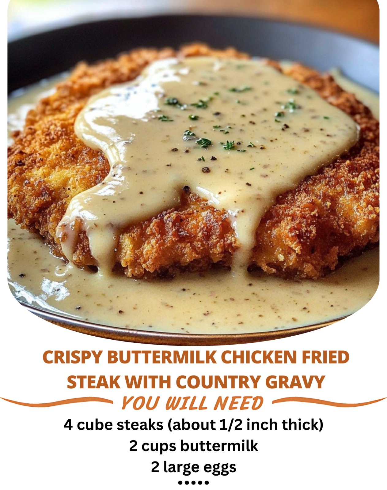 Crispy Buttermilk Chicken Fried Steak with Country Gravy 🍗😋