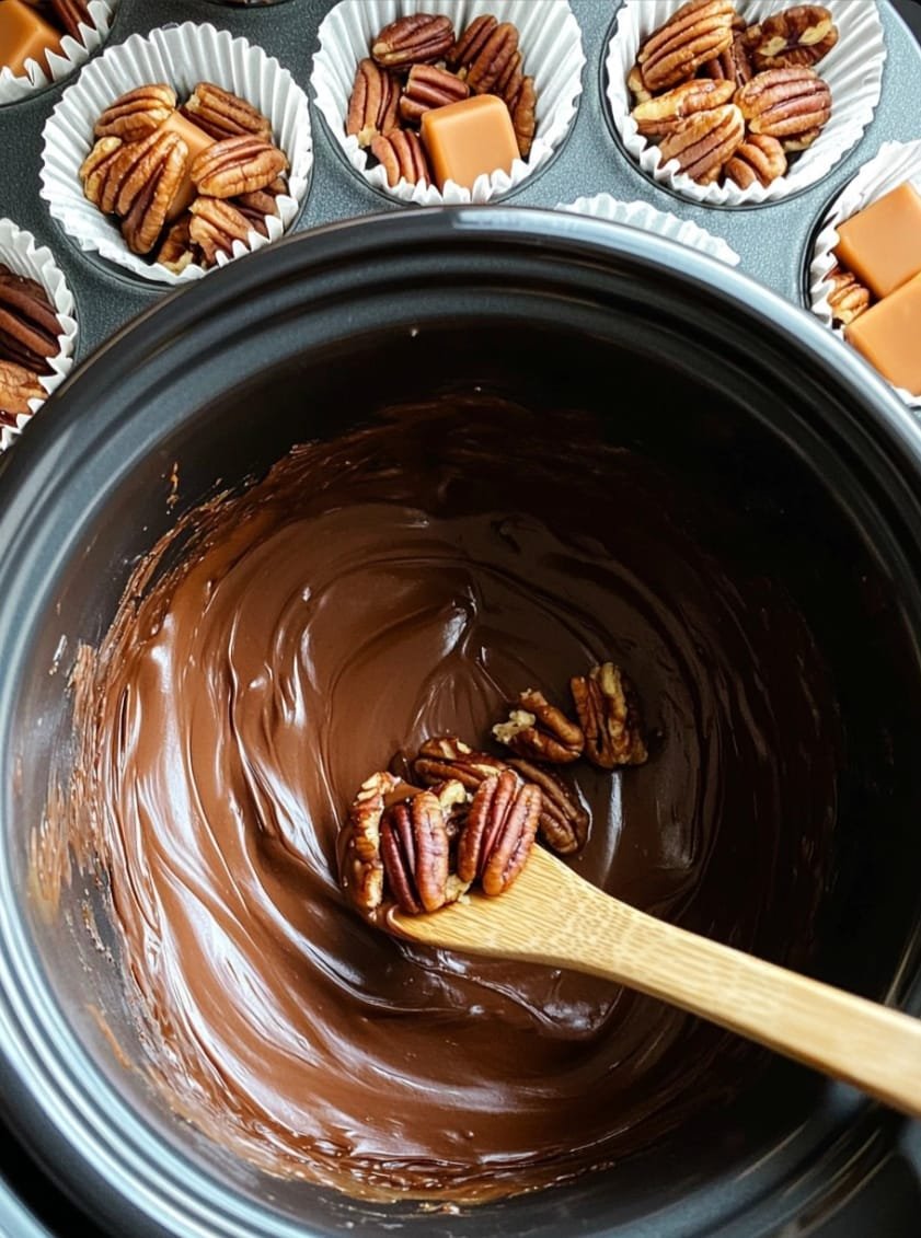 These Easy Crockpot Turtles are a delicious and effortless treat! Creamy chocolate, rich caramel, and crunchy pecans combine to create a classic confection, made simple with your slow cooker. Perfect for busy holidays or a quick batch of delightful gifts, these candies are irresistible with a cup of coffee.