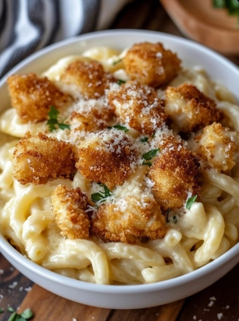 Garlic Butter Chicken Bites with Creamy Parmesan Pasta