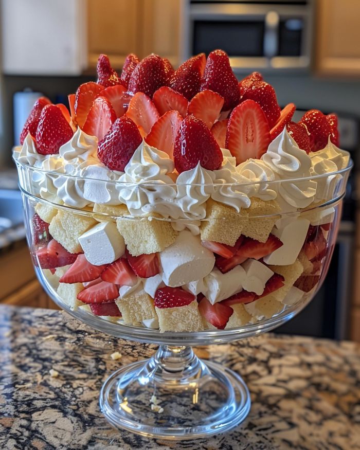 Imagine diving into a dessert that’s as delightful to look at as it is to taste. That’s what you get with the Strawberry Punch Bowl Cake, a luscious layering of moist white cake, juicy fresh strawberries, creamy pudding, and a whisper of crunchy pecans to top it off. This dessert is not just a treat for the palate but also a feast for the eyes, making it a perfect centerpiece for any gathering, from casual get-togethers to festive celebrations.