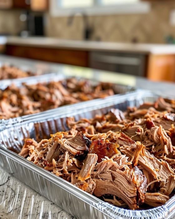Once cooked, shred the pork using two forks. Mix the meat with the juices in the slow cooker to ensure it remains moist and flavorful.