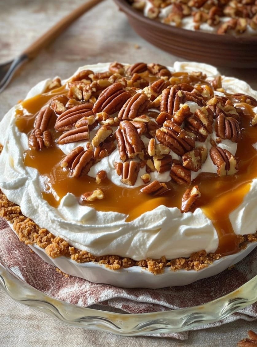 Get ready for a flavor explosion! This No-Bake Pecan Pie Cheesecake perfectly blends the creamy goodness of cheesecake with the sweet, nutty deliciousness of pecan pie – all without turning on your oven! It boasts a buttery graham cracker crust, a smooth cream cheese filling, and a rich pecan pie topping. Perfect for holidays, potlucks, or any occasion that deserves a decadent treat.