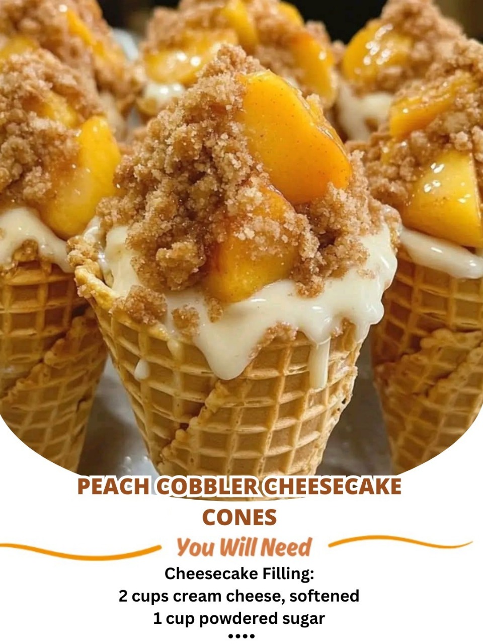 A Sweet Southern Fusion: Creamy Cheesecake Meets Warm Peach Cobbler in a Portable Cone!