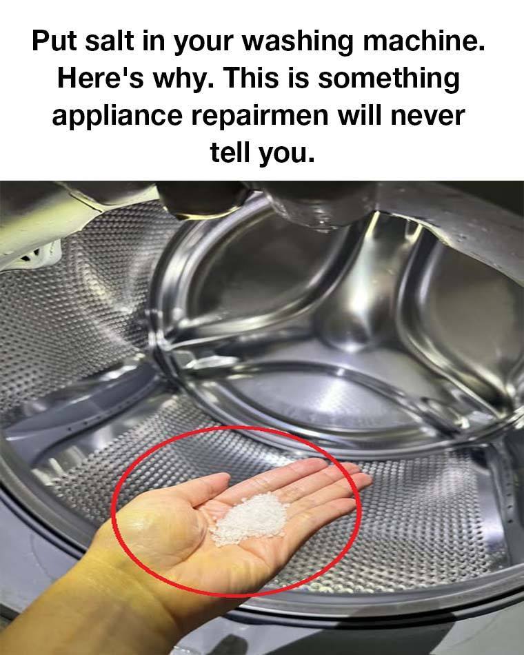 Put salt in your washing machine. Here’s why. This is something appliance repairmen will never tell you.
