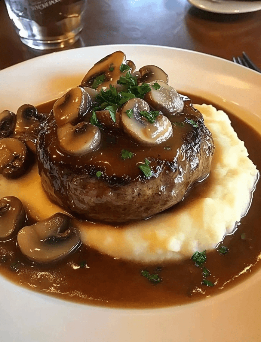 This Salisbury steak recipe is a guaranteed crowd-pleaser! Tender ground beef patties, smothered in a rich mushroom and onion gravy, and served alongside creamy garlic mashed potatoes – it’s the ultimate comfort food experience. Let’s get cooking!