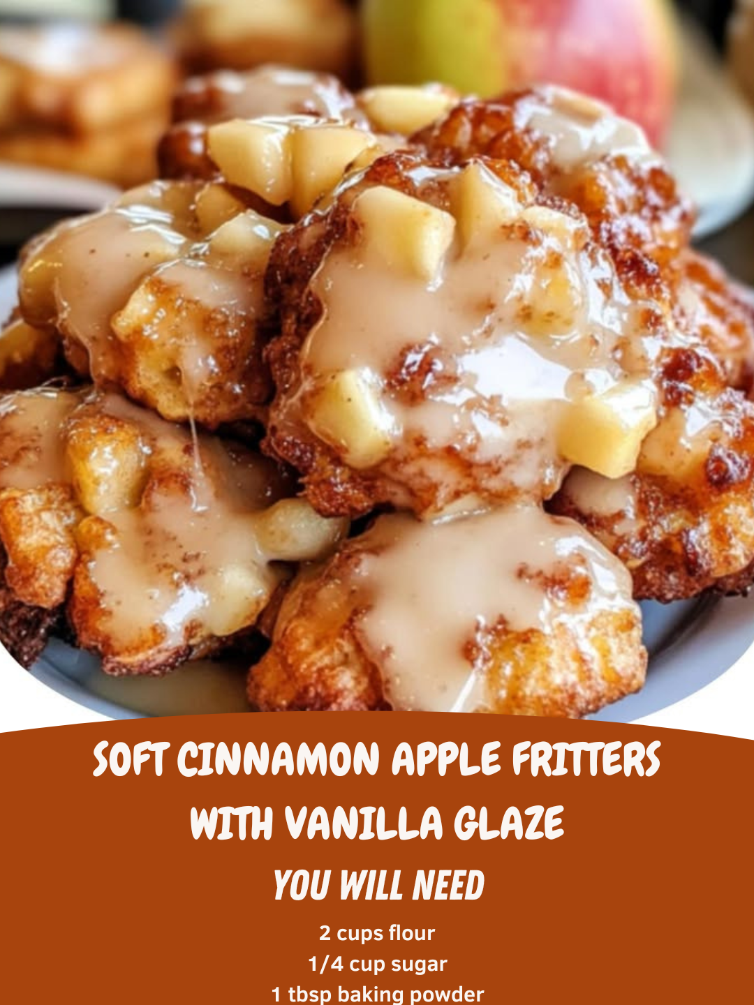 Soft Cinnamon Apple Fritters with Vanilla Glaze