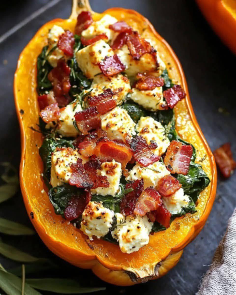 Stuffed Butternut Squash with Feta, Spinach & Bacon ![]()