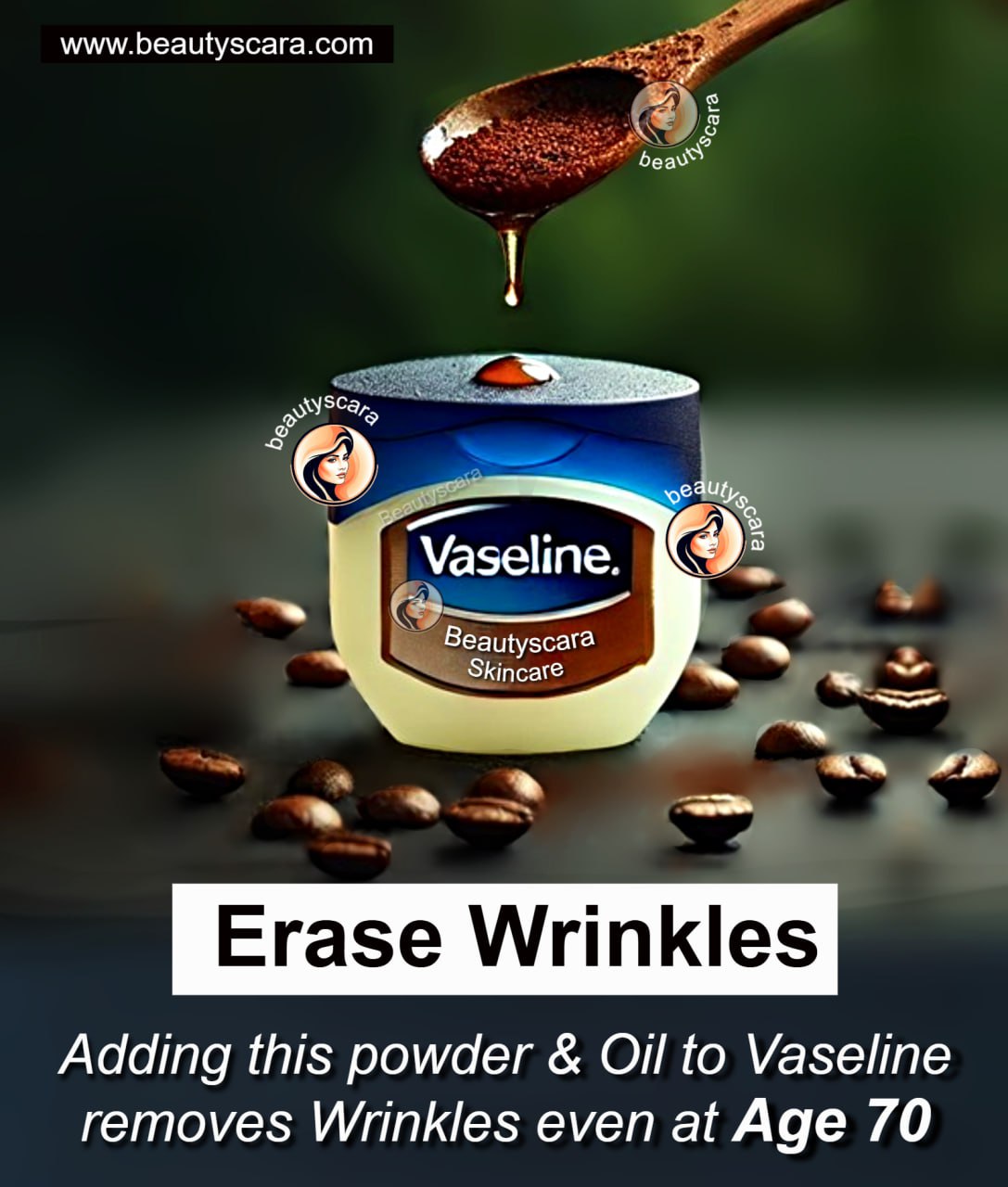 • Mix 1 teaspoon of coffee powder with 1 teaspoon of Vaseline and a few drops of almond oil. Massage onto your skin for 5 minutes, then wipe off for a natural glow.